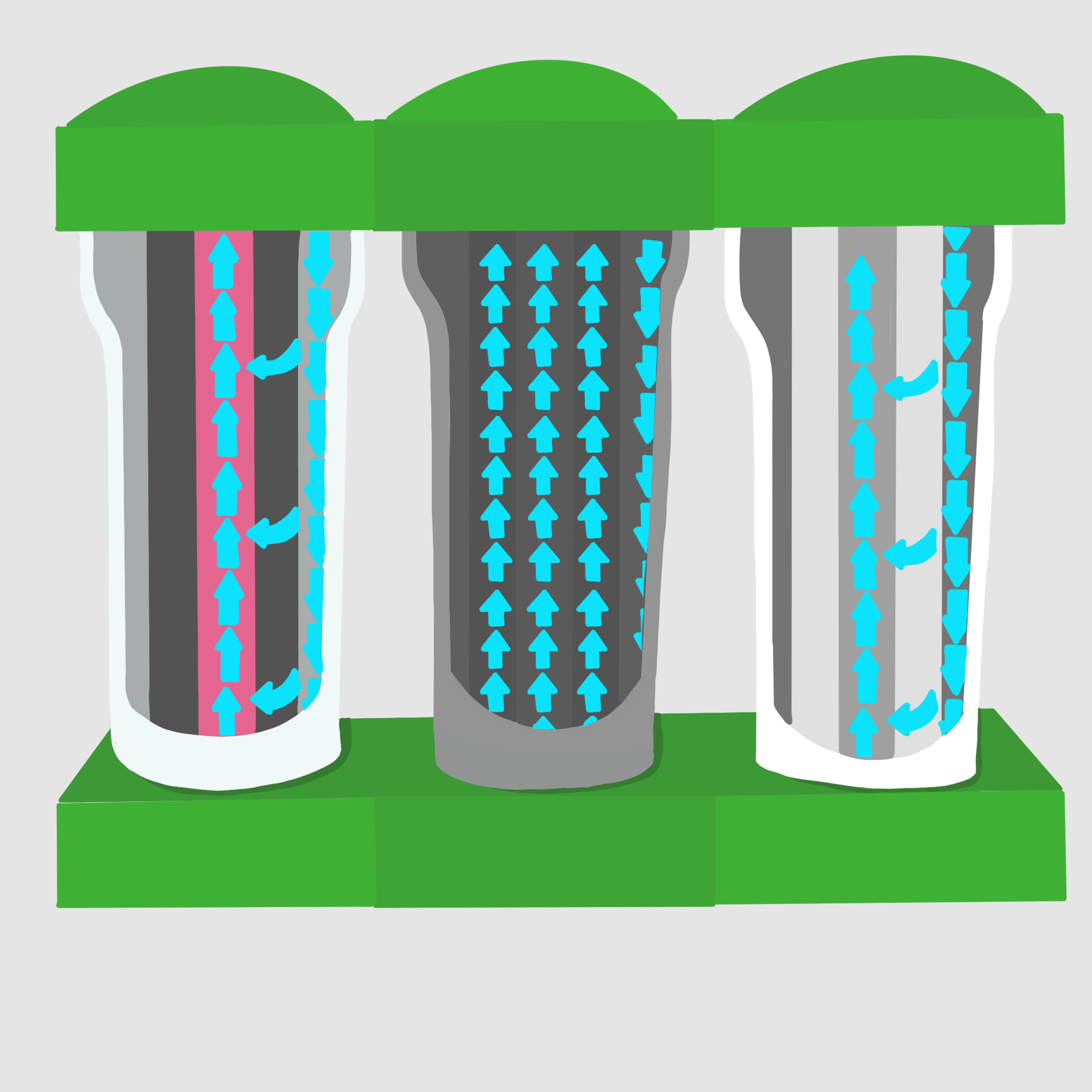 Nun ist das Wasser gereinigt und frei von jeglichen Verunreinigungen. Es durchläuft als letzten Schritt den Kokosnussschalen-Kohle-Filter, dieser korrigiert den Geruch und den Geschmack des Wassers.